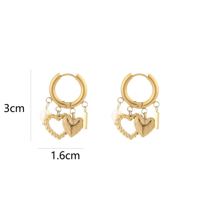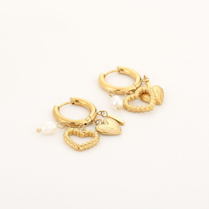 Creolen met Hartjesbedels – Stainless Steel Oorbellen Goudkleurig